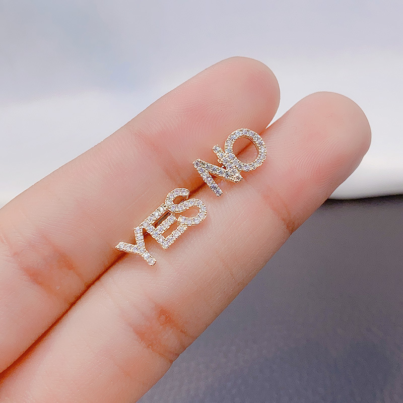 微はめ込みドリルyes noイヤリング女性S925純銀針ピアス小型個性小衆シンプル耳飾りデザイン感