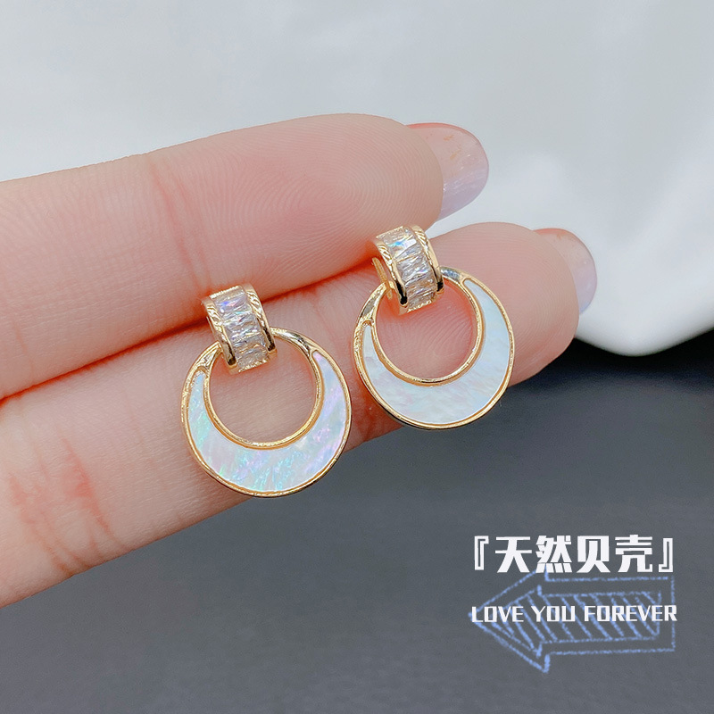 天然貝殻丸ピアス女性韓国ネット赤冷たい風耳飾りシンプルで洗練されたイヤリングレトロ通勤