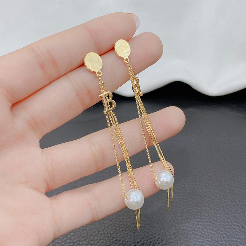 真珠のアルファベットBの長いタイプのタッセルのイヤリングの女性s 925純銀の針のピアスの潮流の個性の百合のバロックの耳飾り
