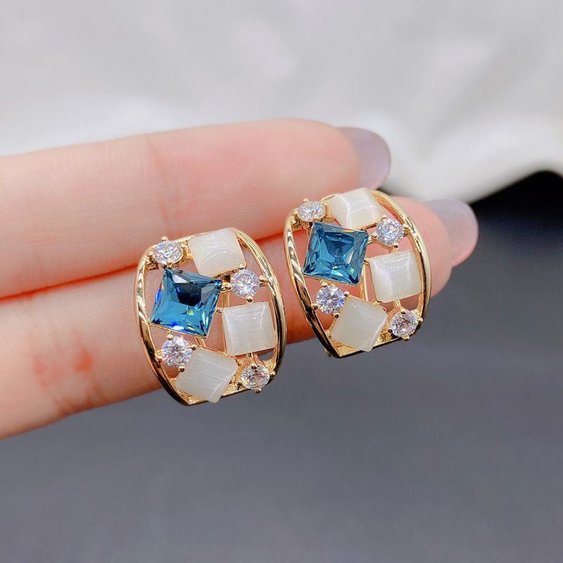 軽くて豪華な猫の目の石の四角のイヤリングの女性の個性の精巧な韓国版のピアスの洋風の小さい大衆のファッションのデザイン感のイヤリング