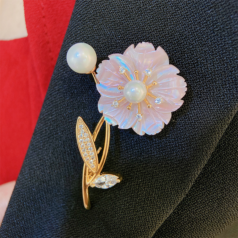 ブローチピンピン防止光ツバキの天然貝殻真珠の女性の胸の花のデザイン感があります。
