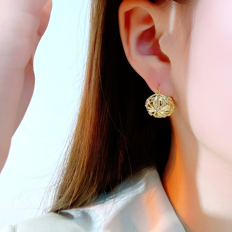 透かし彫り円イヤリングS925純銀針ピアスファッション大気耳飾り個性百合高級通勤気質