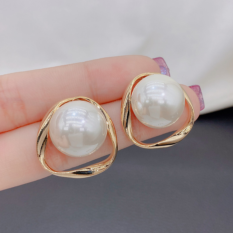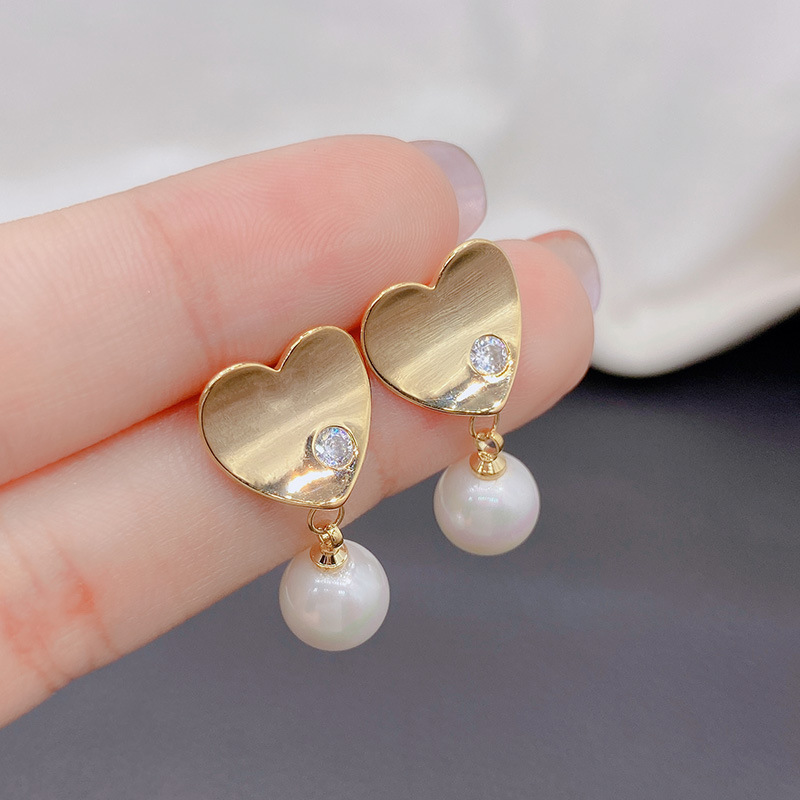 シンプルで甘い気質の金属風愛真珠イヤリング女性S925純銀針ピアス