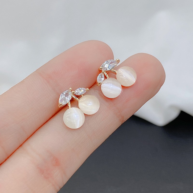 さくらんぼピアス猫眼石イヤリングはシンプルで大衆的な気質が小さくて洗練されている通勤イヤリングに耳穴がない