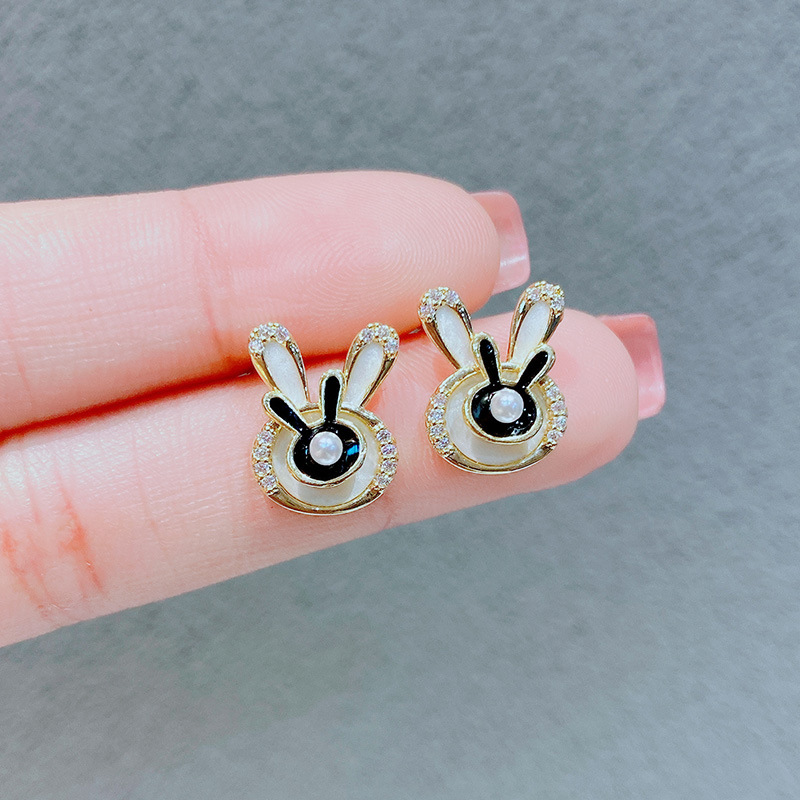 抱っこウサギのウサギのイヤリングの女性の個性の耳飾りの小衆のピアスの白黒の2色の軽くて豪華な高級感のかわいい耳のクリップ
