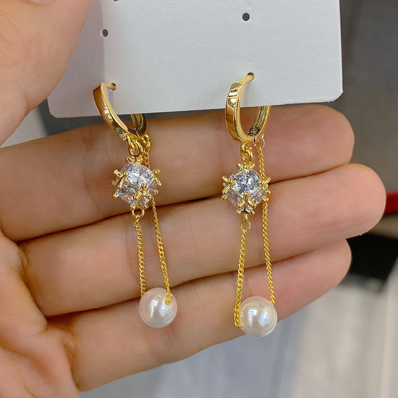 超フラッシュブロックのタッセルのイヤリングの女性の経典のフランスの真珠の耳のボタンの新型の潮の耳飾りのデザイン感は気質の個性を現します。