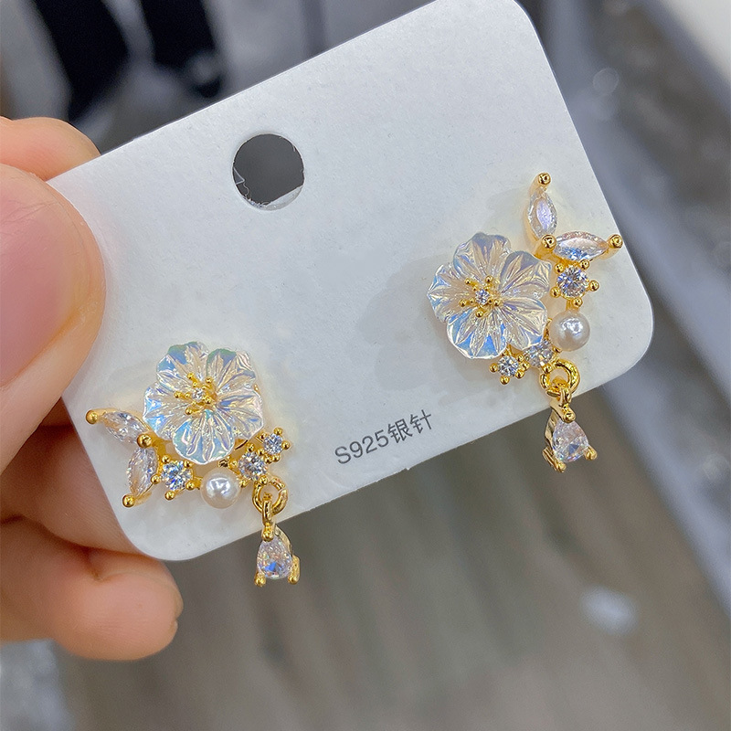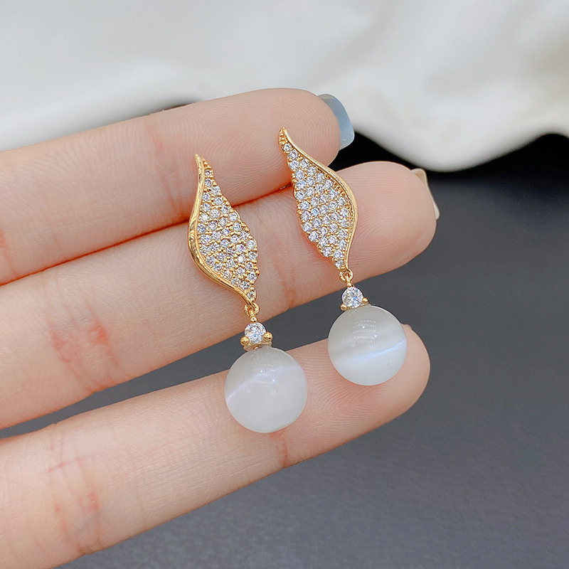 ジルコニウムの翼のイヤリングの女性のファッション的な個性の猫の目の石のイヤリングの韓国の小さい大衆の百合の通勤の気質のネットの赤い耳飾り
