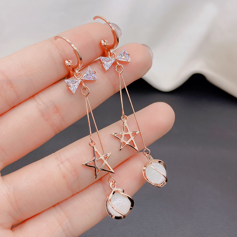 ロングタイプの痩せ顔五角星猫眼石流蘇イヤリング女性韓国東大門耳ボタンファッション気質