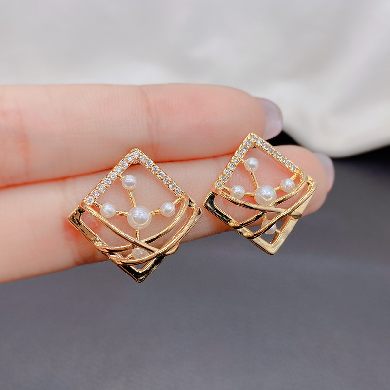 レトロで洗練されたファッションの四角い鳥の巣真珠イヤリング女性の個性的な大衆気質ピアス