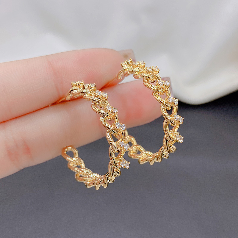 真金の電気めっきの巻きC形の耳輪の透かし彫りのイヤリングの女性の潮流の大気のピアスのファッションの個性の大気の百合の装飾