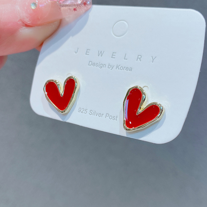 S925純銀針は小さくて精巧な赤い愛の桃の心のピアスの女性の大衆の高級な個性の優しい通勤の耳飾りです。