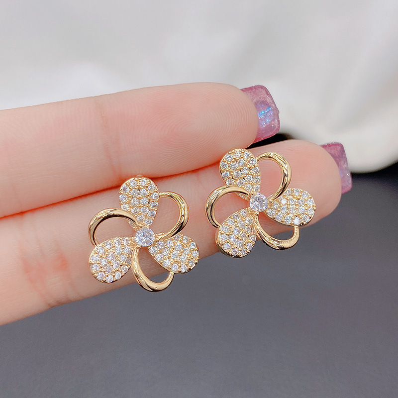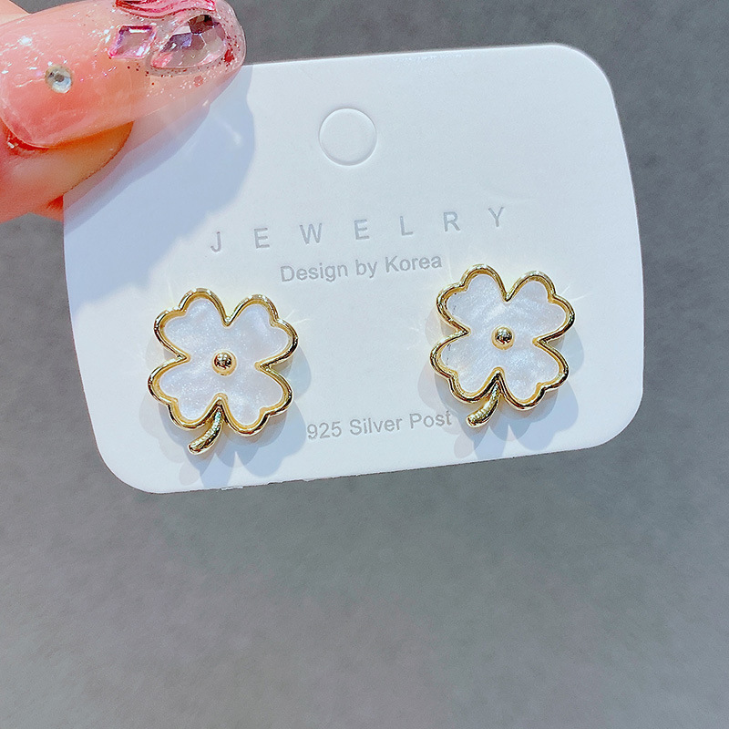 フランスの小衆デザイン四葉草ピアスシンプル森系清新耳飾り気質百合S925純銀針イヤリング