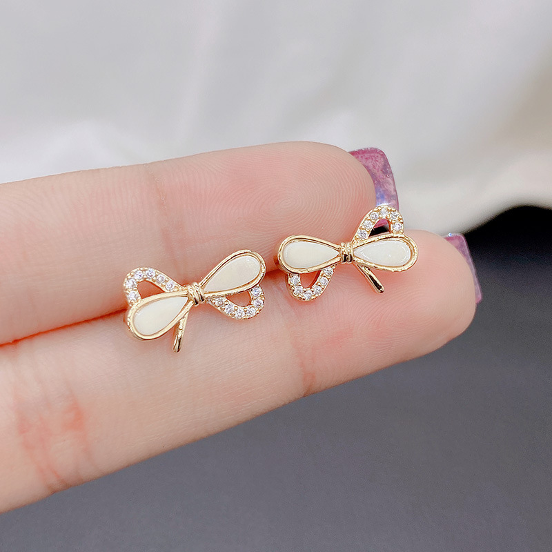 おしゃれで甘い小衆蝶結びピアス女性S925純銀針シンプルで豪華なイヤリングは小さくて精巧な耳飾りです。