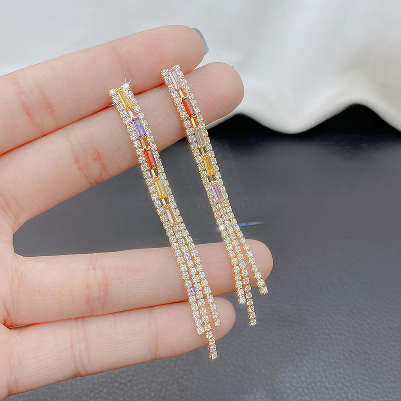 超閃流蘇の長いイヤリングの女性のファッションの精緻な仙気は気質のイヤリングの個性のフランスの高級感の耳飾りを現します。