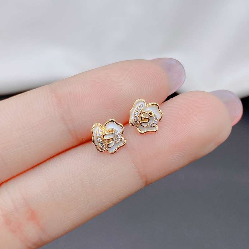 コンパクトで洗練されたシンプルな釉薬花ピアスS925純銀針の小さなイヤリングは、耳飾りを摘む必要はありません