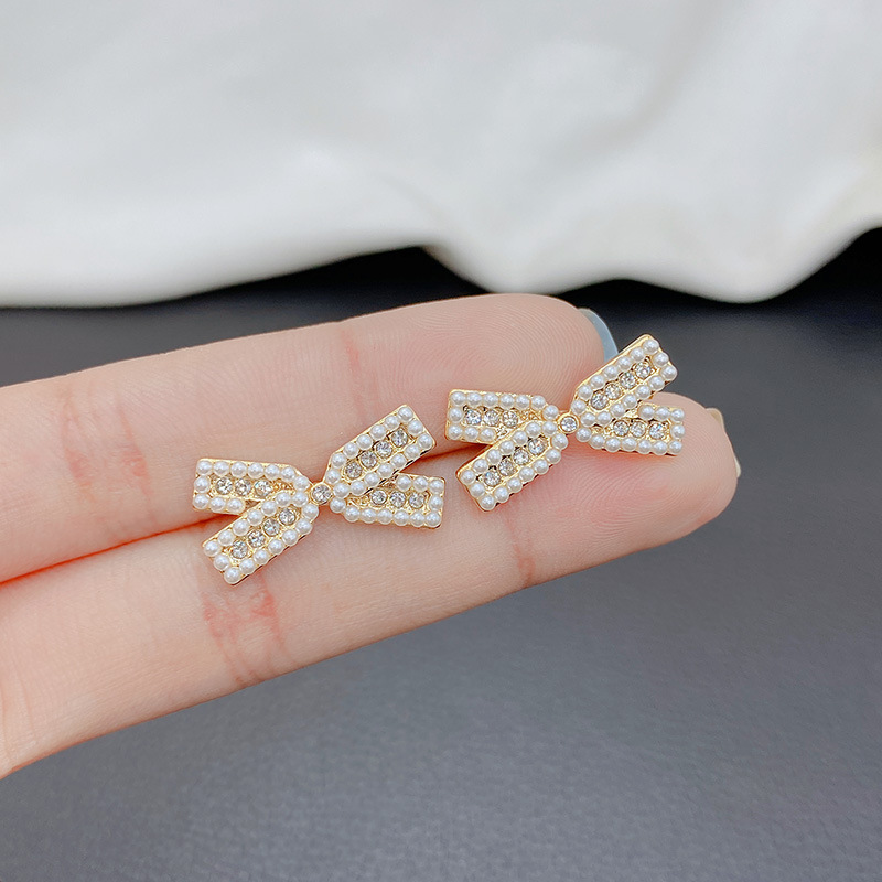 蝶結びの真珠のピアスの女性の甘美なイヤリングの大衆の気質の韓国の東門s 925純銀の針のイヤリング