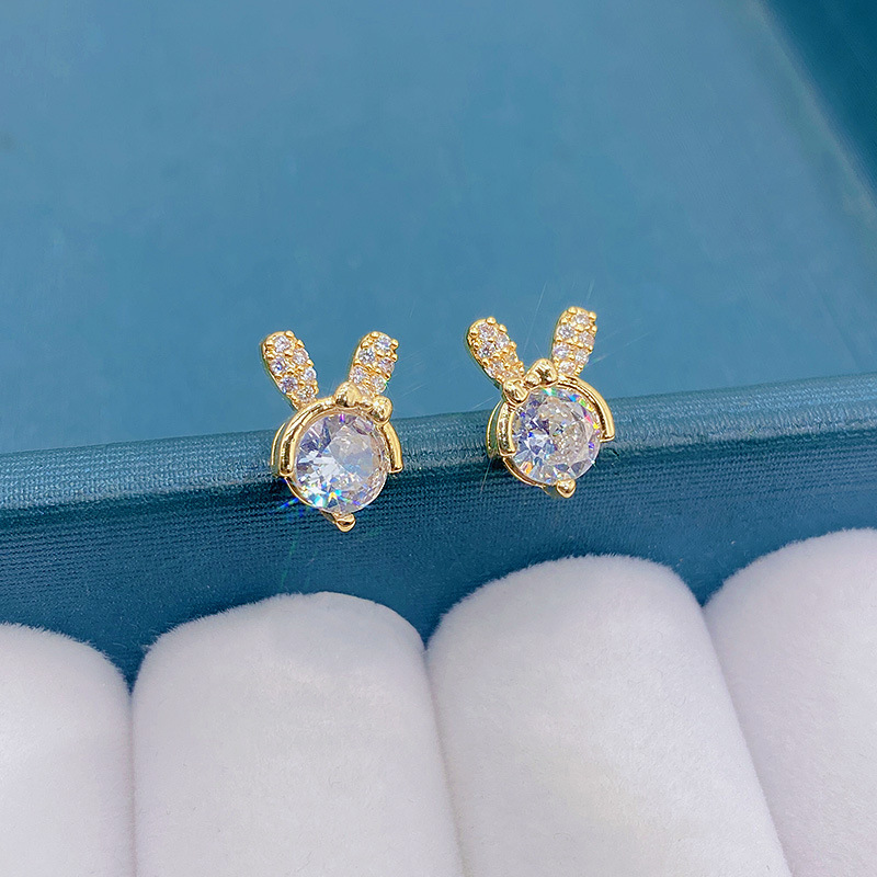水晶のウサギのイヤリングの個性の小さい大衆のミニの小さい耳飾りのかわいい蝶結びの独特な軽い豪華なイヤリング