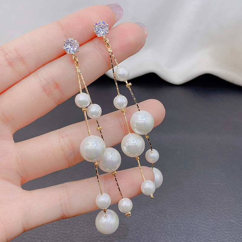 ファッションブランドの高級感真珠の長いタイプのフリンジのイヤリングは軽くて豪華です。