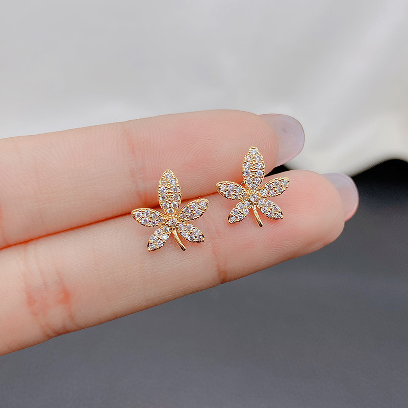 カエデの葉のピアスの女性のファッション的な個性のイヤリングは小さくて、通勤の純銀の針の耳飾りに似合います。