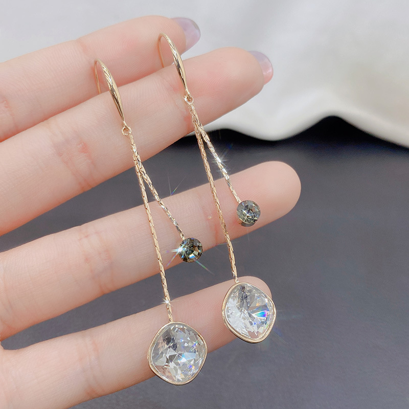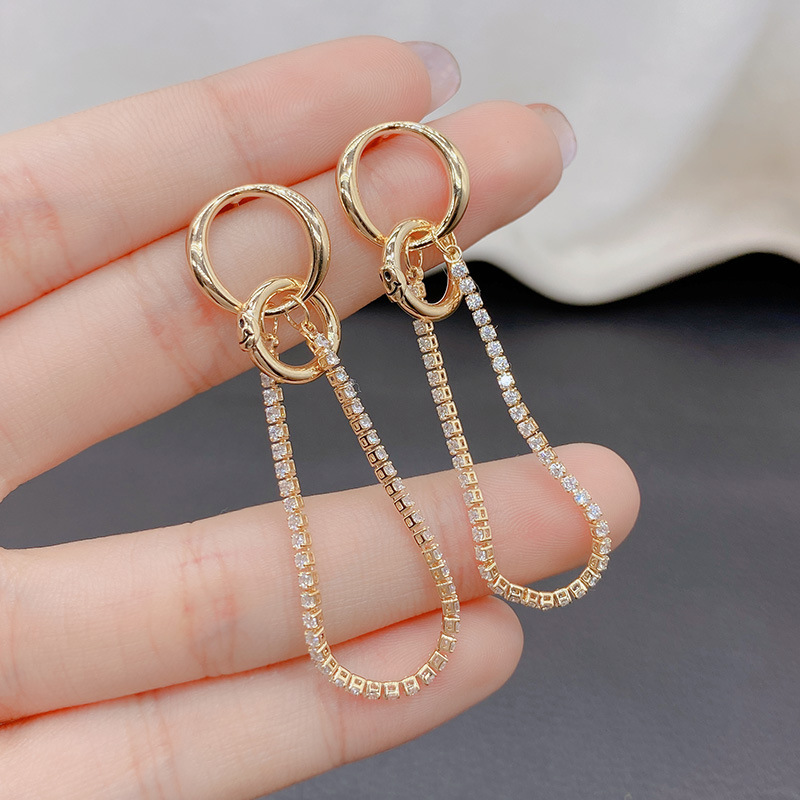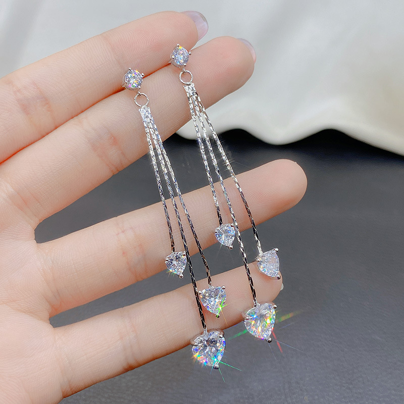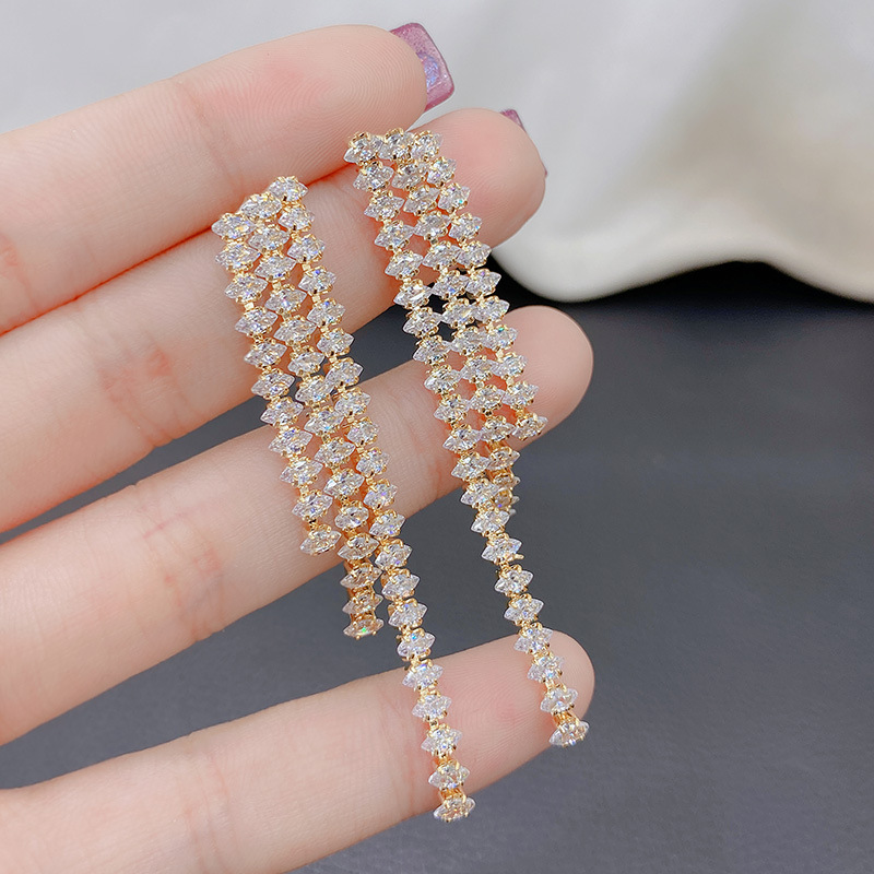 軽くて豪華な超フラッシュ気質の韓国版のドリルの長いタイプのフリンジイヤリングの女性s 925純銀の針の個性は百合でやせている顔を見せます。