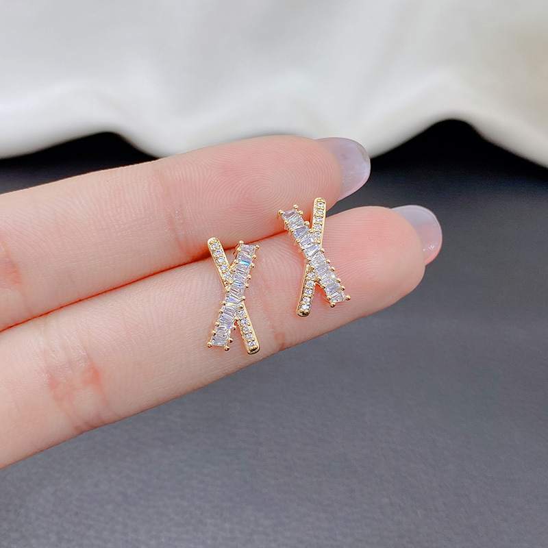文字Xピアス女性の個性が洗練されたイヤリングS925純銀針耳飾りサラリーマン通勤小型韓国版