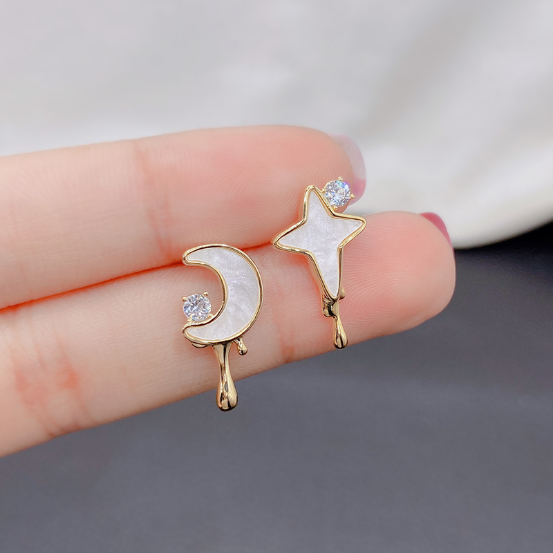 個性的な気質は非対称星月イヤリング女性S925純銀針ファッション潮ピアスの美しい耳飾り