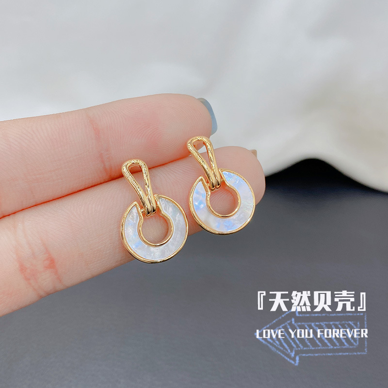 天然貝殻イヤリング女性ブランドの軽贅沢高級感耳飾り性冷淡風韓国ピアスS925純銀針