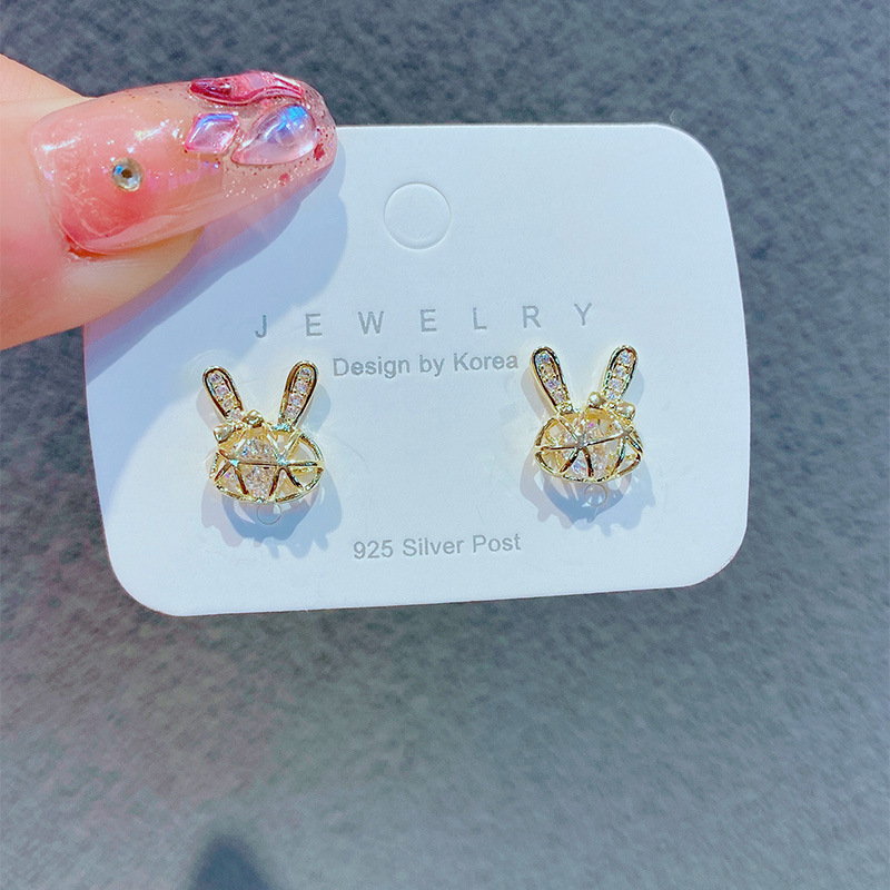 かわいい透かし彫りのウサギのピアスの女性の韓系のダイヤモンドの耳飾りの個性の小さい大衆のデザイン感の耳飾りの小さい耳のクリップ