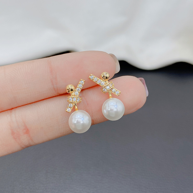 蝶結びの真珠のイヤリングの女性韓国の個性の気質のイヤリングの女性の小さい大衆のデザイン感の通勤の百合のファッションの耳飾り