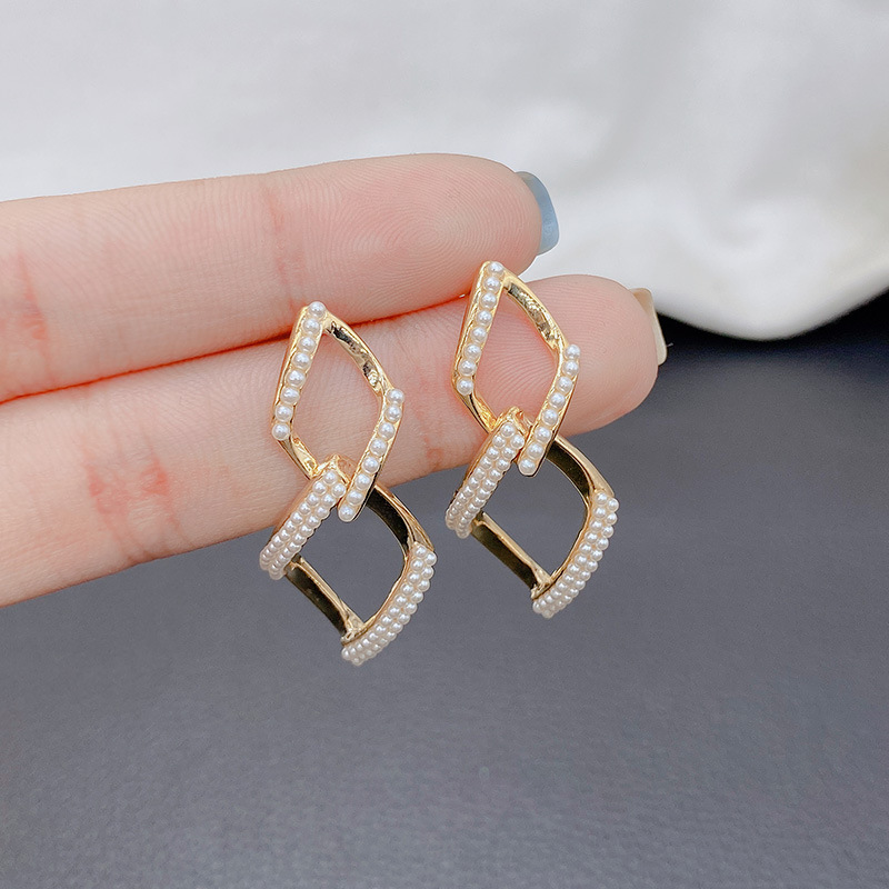 真珠の双菱の形のイヤリングの女性の韓国のファッションの大きい札のピアスs 925純銀の針のネットのネットの赤い同項の高級感の耳飾り