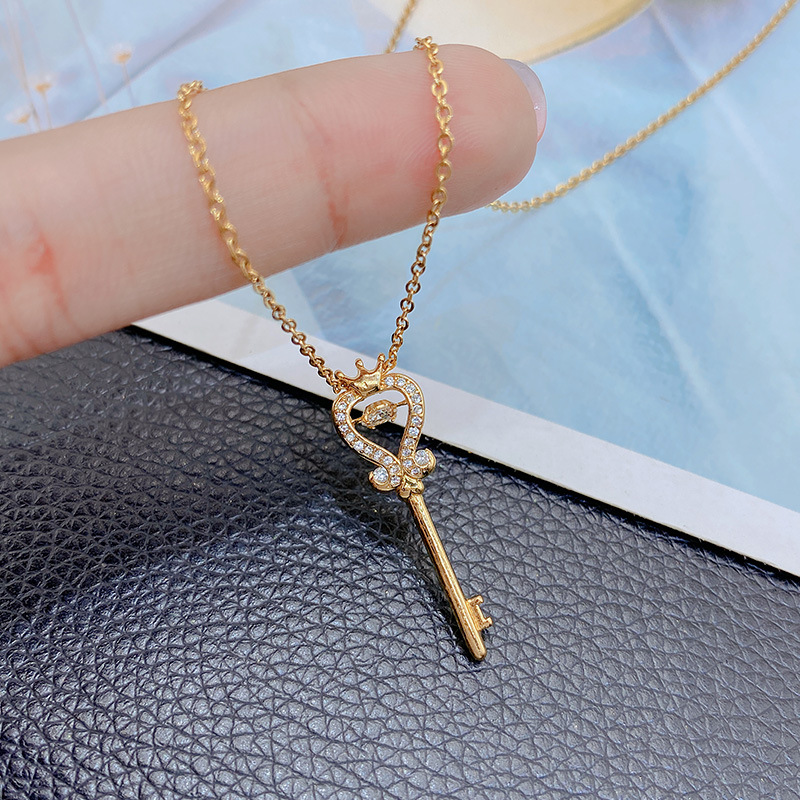 個性的で精巧な韓国版の鼓動する心の鍵のネックレスの女性の大衆のデザイン感のロックの鎖は簡単で、似合う気質です。