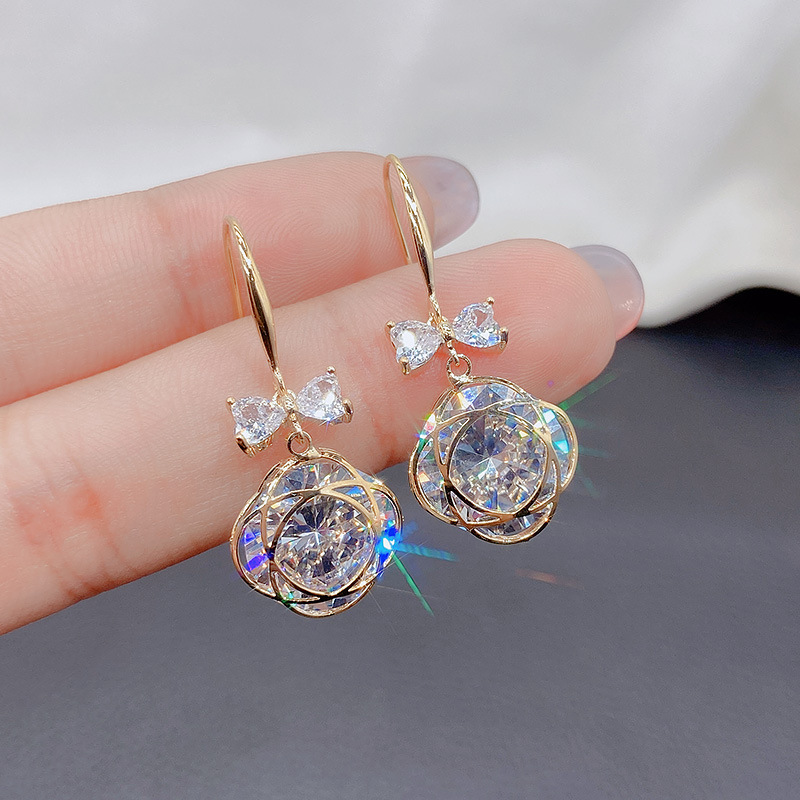 超閃銀針の新型の精緻な恋惜結のダイヤモンドのイヤリングの女性の韓国のネットの赤い同型の耳飾りの気質は軽くて豪華です。