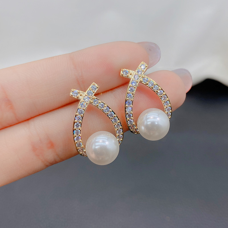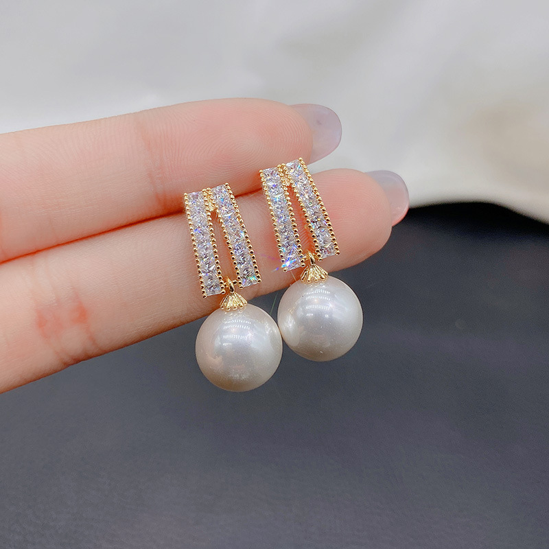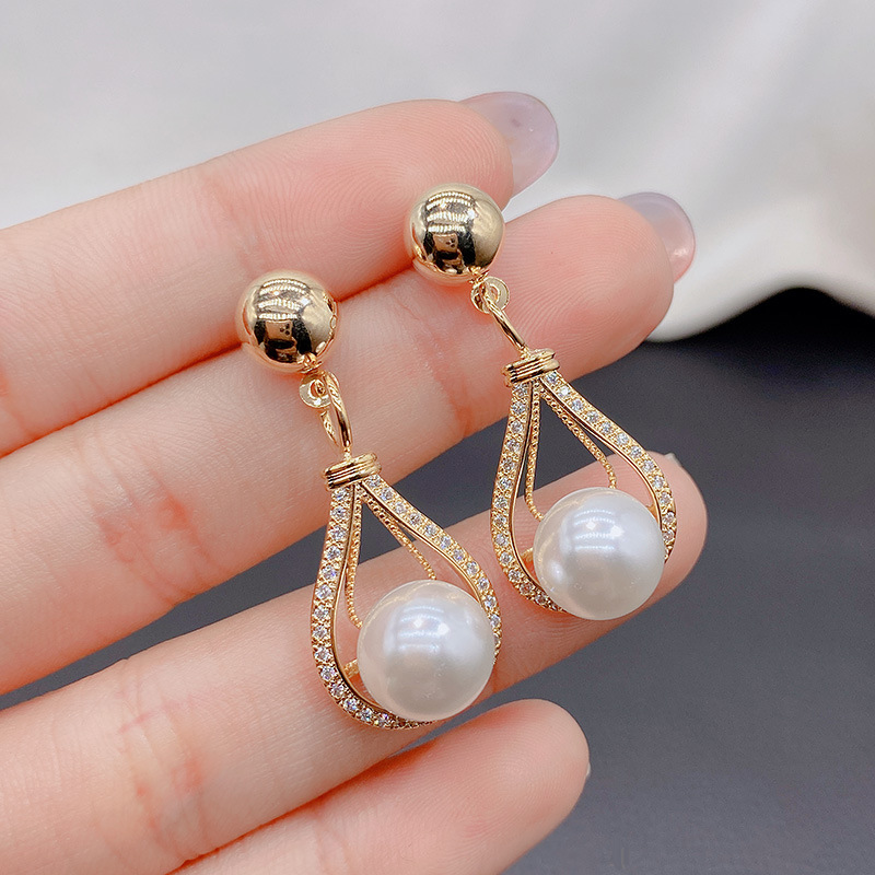 ジルコニウム水滴真珠イヤリング韓国東大門個性シンプルなデザイン感イヤリングファッション洗練されたイヤリング