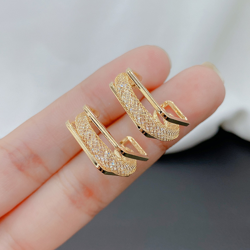 個性的でシンプルな透かし彫りの水晶の幾何学の四角形のイヤリングの小さい大衆のデザイナーの金のピアスの女性の個性の気質の耳飾り