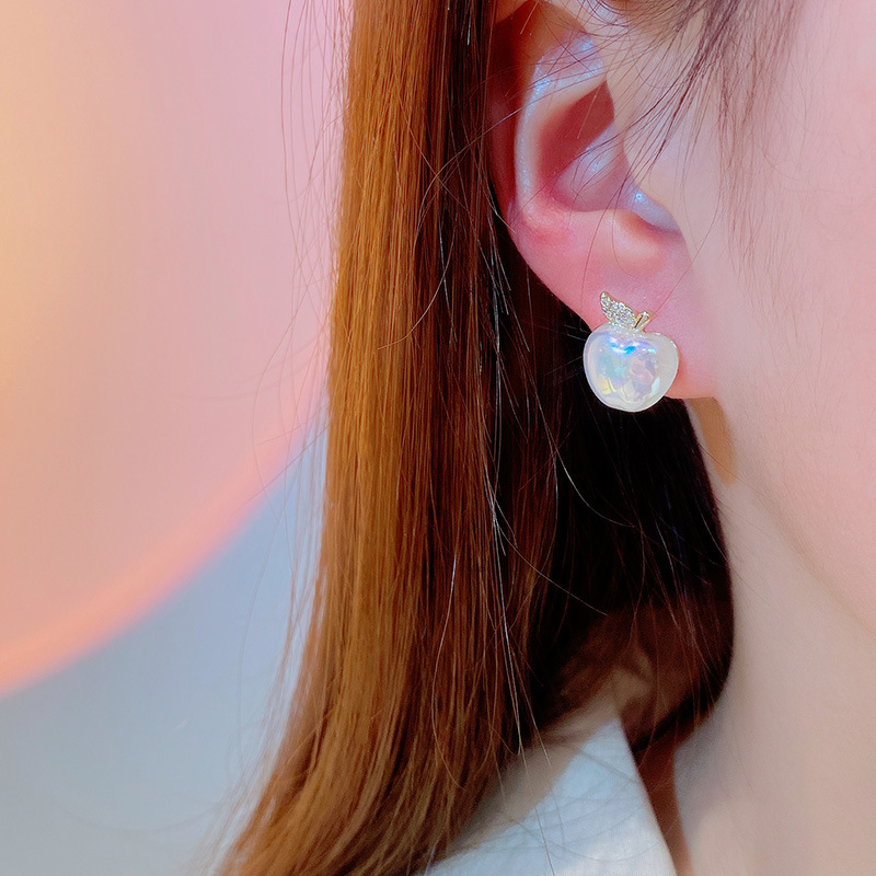 S925純銀針高級感小衆リンゴピアス女性かわいい洗練されたネット赤同種の気質耳飾り