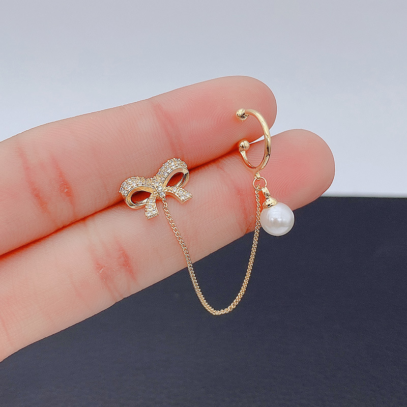ダイヤモンドの蝶結び真珠のイヤリングの耳の骨をちりばめて個性的なファッションをはめます。