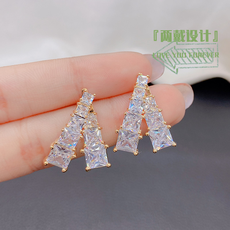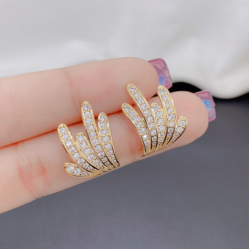 新商品の羽の個性的なオリジナルのジルコニウムのイヤリングの女性s 925純銀の針のピアスの個性の優雅な線はいっぱいで、シンプルです。