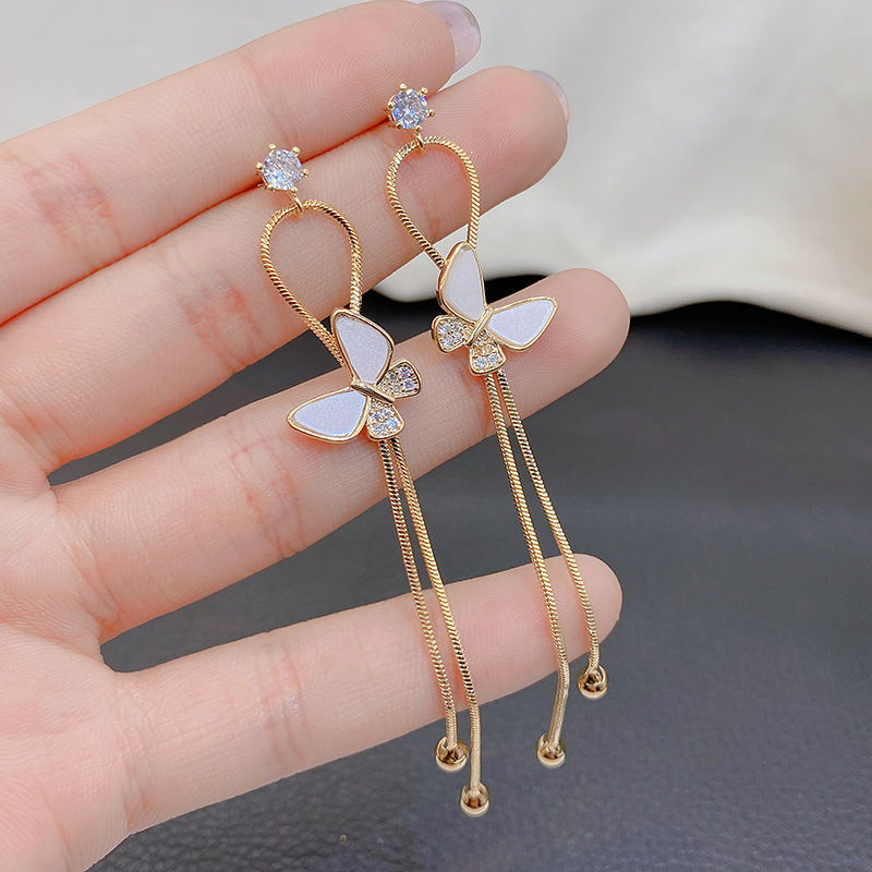 新商品の潮の蝶の貝殻の長いタイプのフリンジイヤリングの女性s 925純銀の針の甘い個性の大衆の高級な顕気質