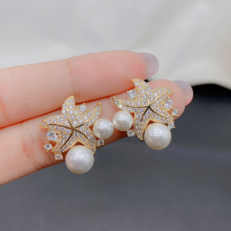 レトロなイヤリング真珠の海星のイヤリングの女性の軽豪華な誇張の高級感のイヤリングのファッションS925純銀の針のイヤリングの潮