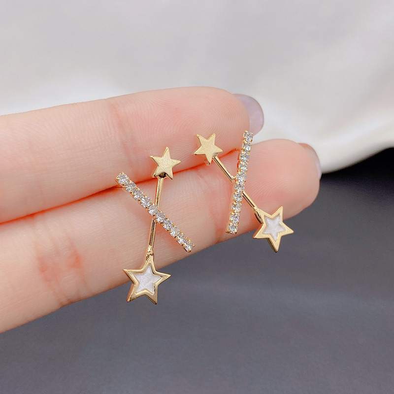 韓国シンプル気質五角星イヤリング女性クロスXピアスs 925純銀針小衆百合ネット赤同金