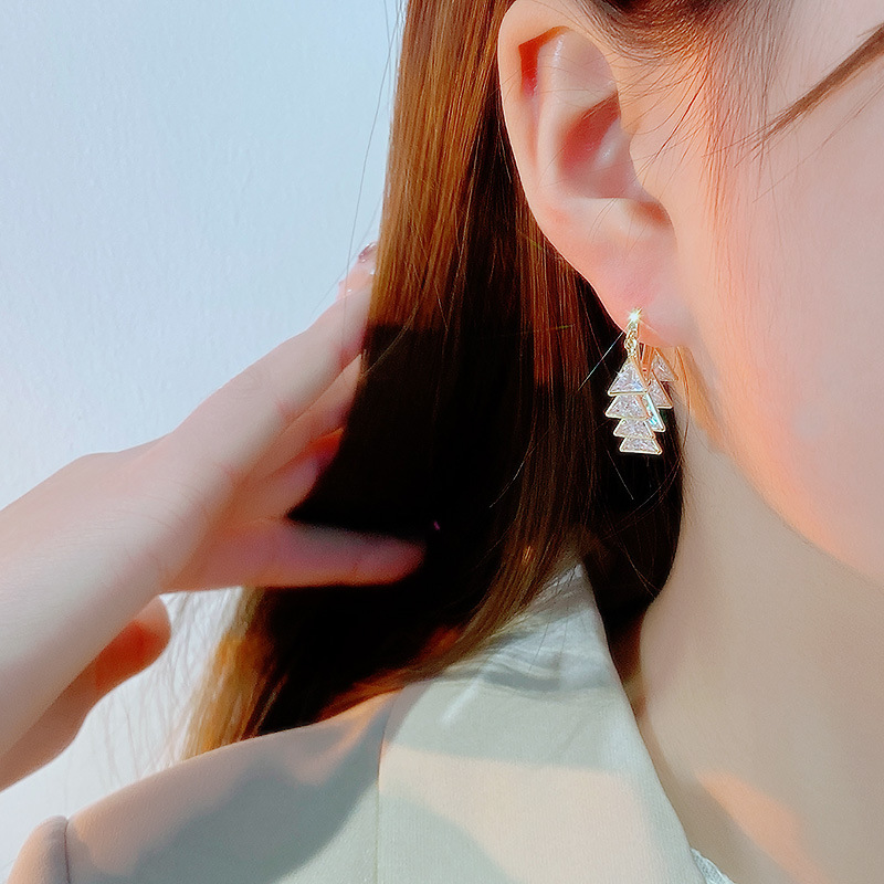 超クールな個性の小さい大衆の三角のフリンジの耳のボタンの精巧で独特な耳飾りの高級感の百合の通勤する設計のイヤリング
