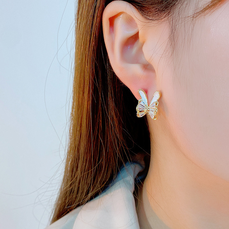 蝶はジルコニウムの甘いイヤリングを入れています。女性の高級ファッションのイヤリングは豪華で高級感があります。