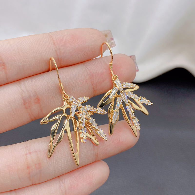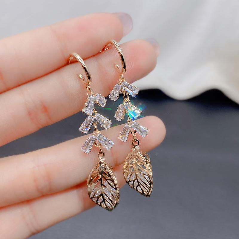 ファッションの個性の高級感はジルコニウムの葉の長いイヤリングを入れます。
