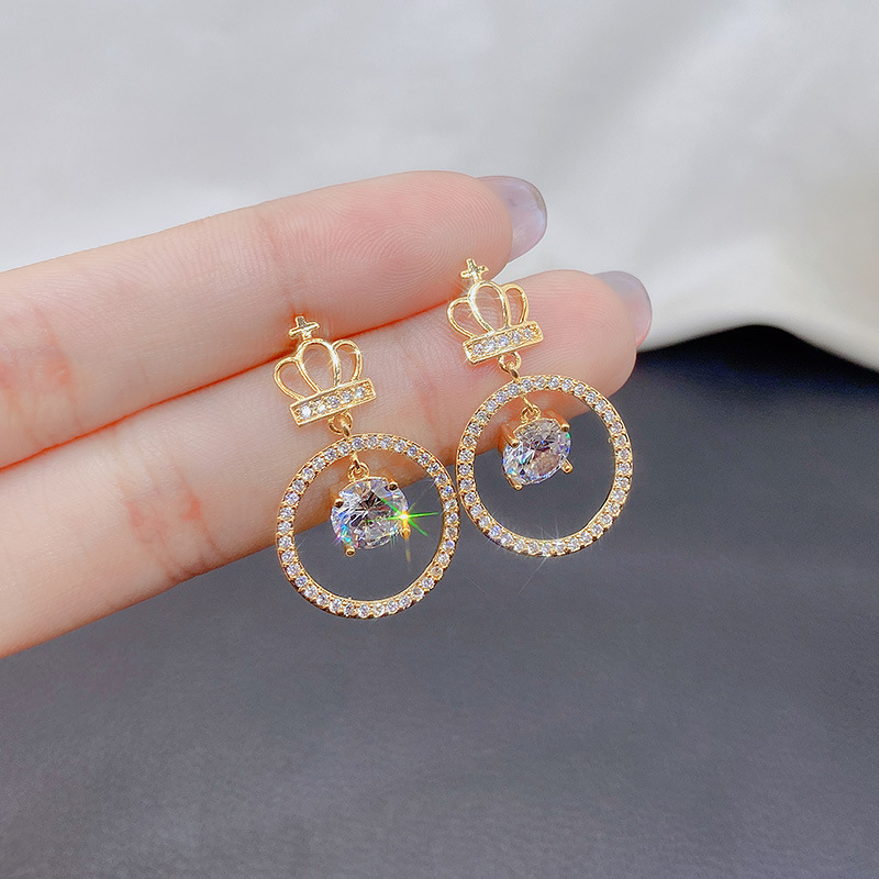 ファッションの超フラッシュの精巧なクラウンの丸いイヤリングの女性s 925純銀の針の耳飾りの個性は誇張して気質のイヤリングを現します。