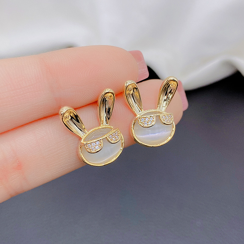 猫の目の石のかわいいメガネのウサギのピアスの小さい大衆のデザイナーの金s 925銀の針の潮流の精巧なイヤリングの耳飾り