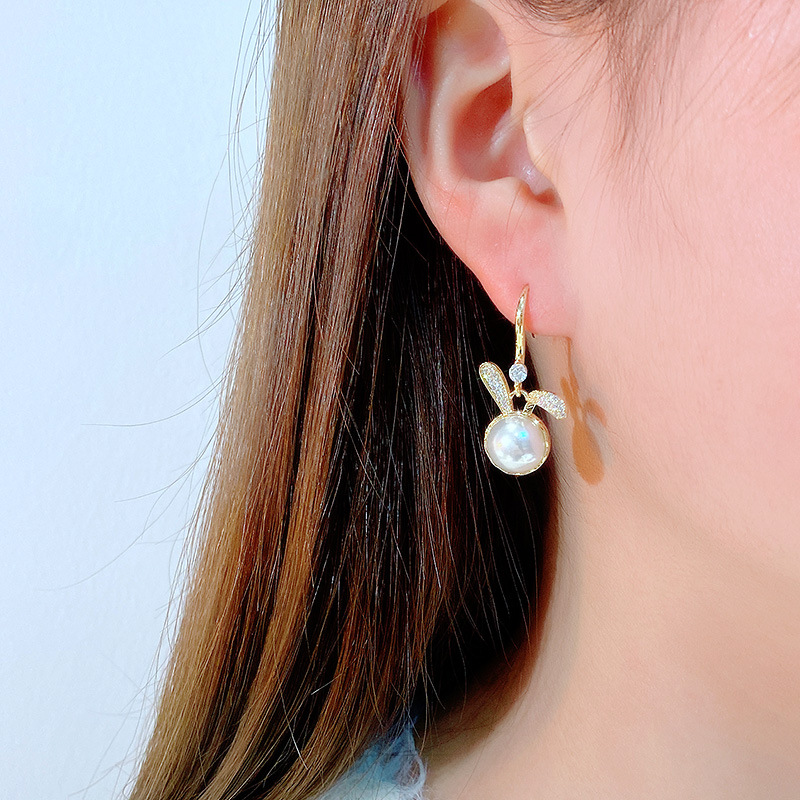 かわいい真珠のウサギのイヤリングの女性の個性の独特な真珠の耳飾りの新しい大衆の設計は軽くて豪華で高級感があります。