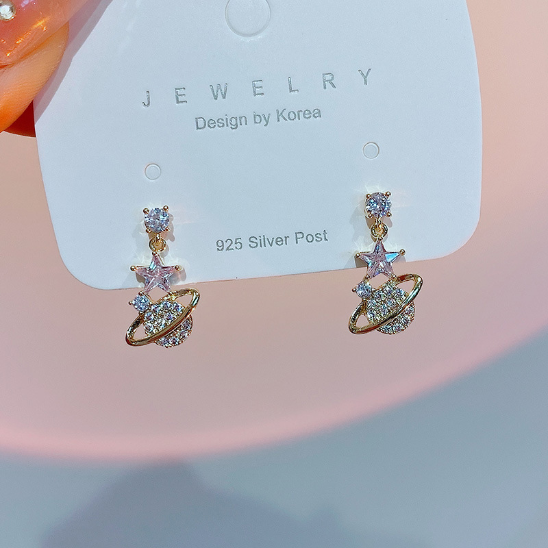 耳の上のロマンチックな星S925純銀針星ピアス