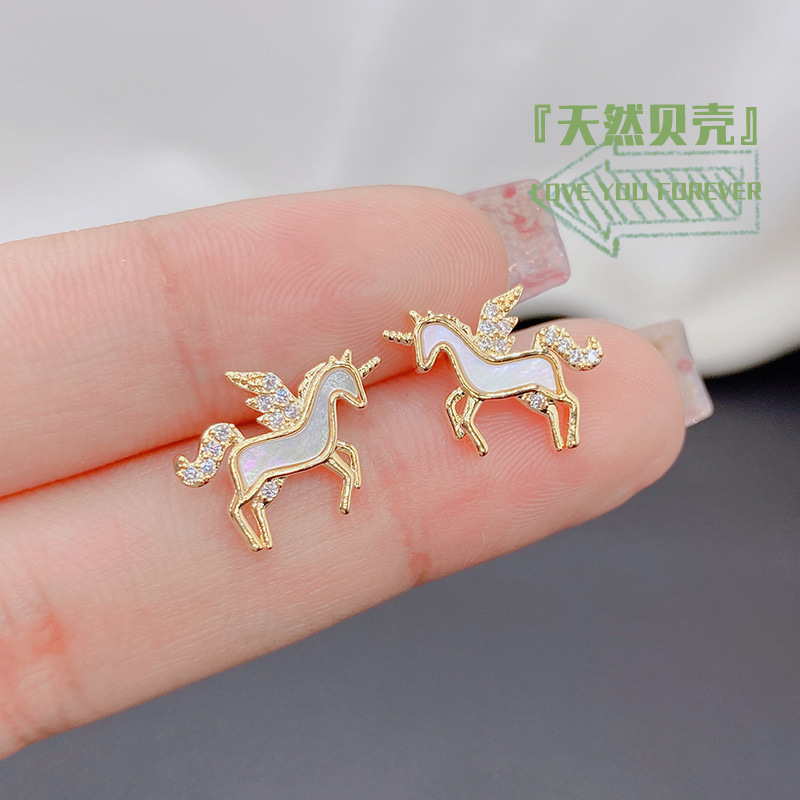 かわいいシンプルな天然貝殻ユニコーンピアス女性イヤリング個性的なデザイン感無耳穴耳クリップ