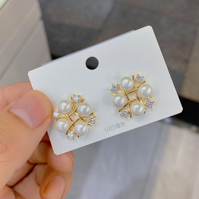 鳥の巣の真珠の小さい香りの風のイヤリングの新型の潮は耳の穴がないです。