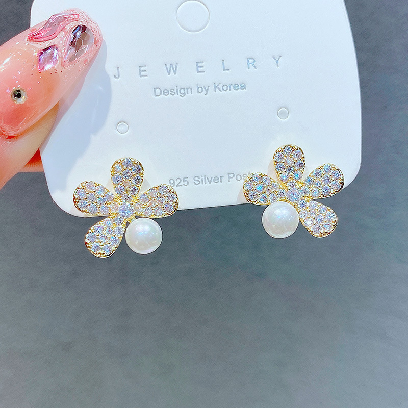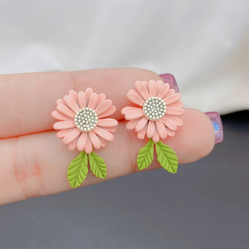 かわいい花の小さなデイジーイヤリング優しいアンドロメダ耳飾りイヤリング学院風個性S925純銀針ピアス